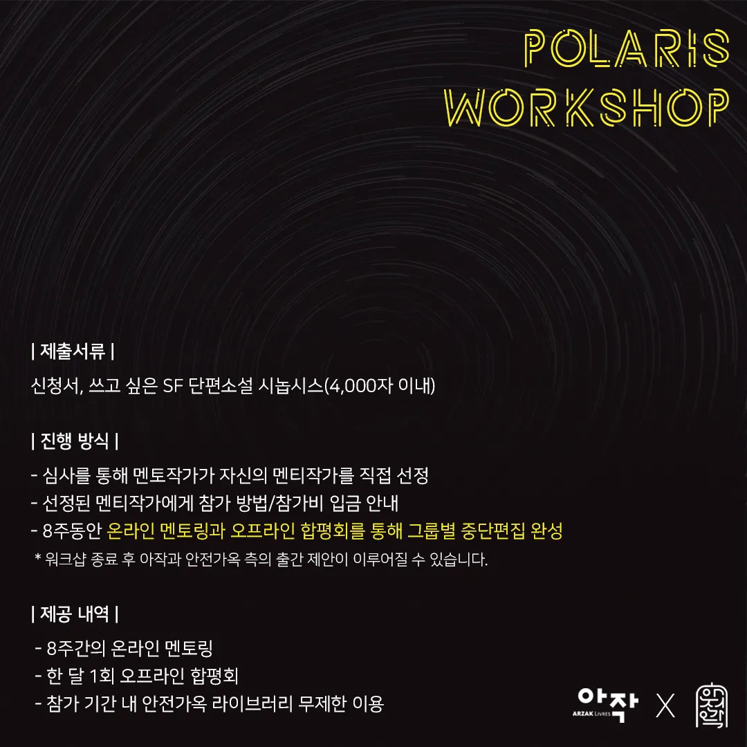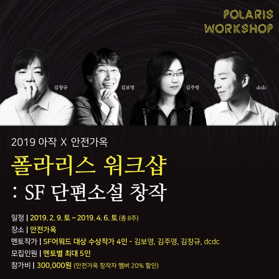 SF 전문 출판사 아작과 안전가옥이 함께 SF 단편소설 창작을 목표로 하는 '폴라리스 워크샵'을 진행하였습니다.